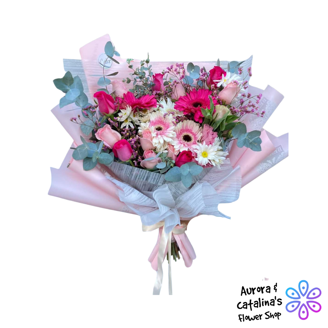 Flores: Gerbera, 24 Rosas, margaritas y moneda Base: Coreano /albanene de plástico.